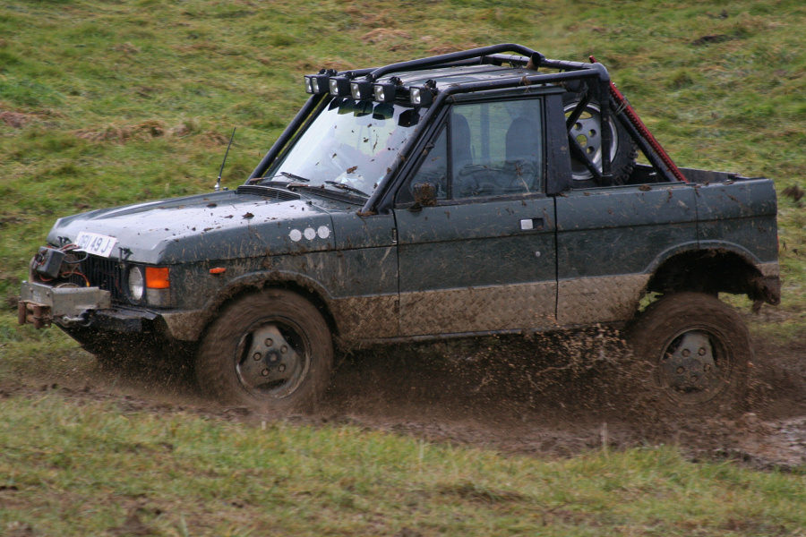 Here is another 4 door Range Rover that has been bobtailed and cut down to produce a pickup truck. Note how an aluminium beer barrel has been used as a strong replacement fuel tank. This Range Rover may no longer be road legal as it arrived on a truck. However the owner may have planned ahead just in case the motor broke when off road. It also meant that the minimum of mud was dropped on the road on the way home.