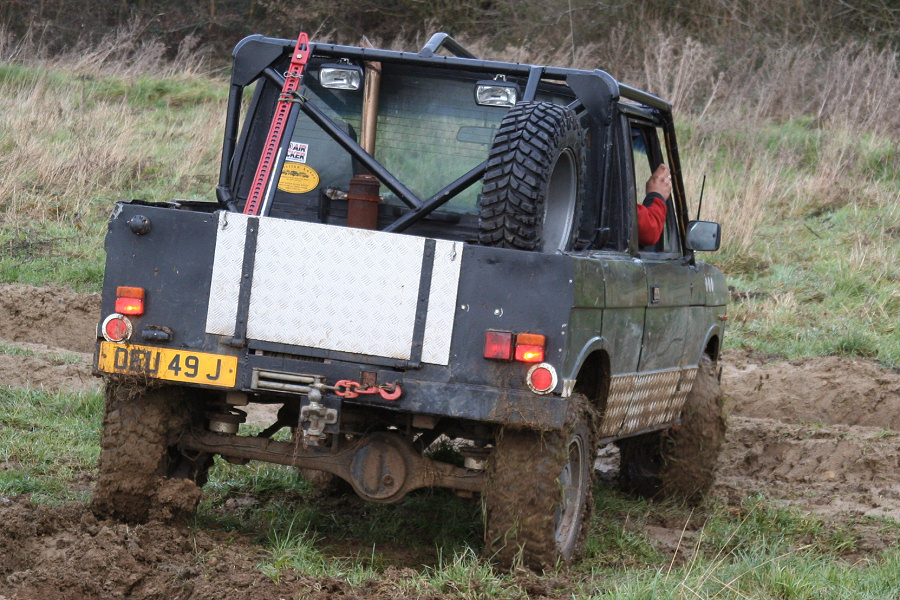 Here is yet another Range Rover that now only has 2 doors, but started with 4, before it was shorted to improve the rear overhang and a cab fabricated to leave the bobtail pickup it is today. The original (lower) tailgate has been discarded and replaced with a chequerplate item (that will not rust so easily). This off-roader is equipped with a winch at both ends. The rear winch is mounted below the new floor.