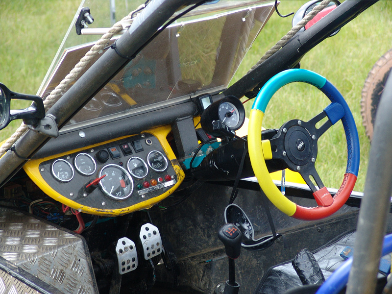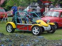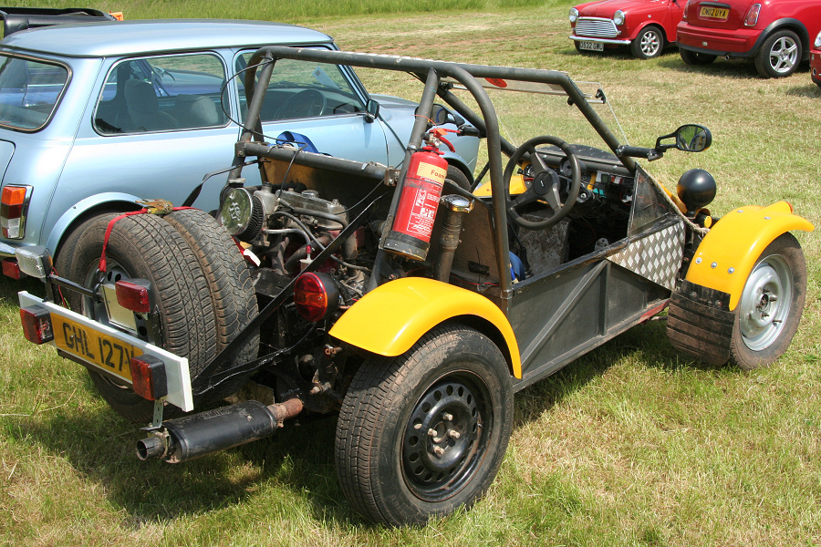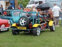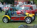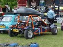 It basically uses the front end of two Minis bolted onto a steel chassis with an integral roll cage. The engine and gearbox from one of the Minis is attached to the back making it rear wheel drive and only 2 wheel drive. Obviously the Range Rover is 4 wheel drive with the engine at the front. The photographs were taken at Bristol Miniday. The Bristol Miniday, which is now actually held at Wraxall, is a good event to find out about, see and even photograph many minis. To find out the date and venue of this years mini show (which I would recommend), take a look at the Bristol Miniday web site. Here are some older (and smaller) photos of some of the same ABS Freestyles as well as another different one. All the ABS Freestyles below have a donor mini (the main one) that is the same age as my Range Rover. Maybe during this year British Leyland were using particularly poor quality steel! The photographs were taken at a previous Bristol Miniday. Home Tomcats Other Options Off Road Racers |