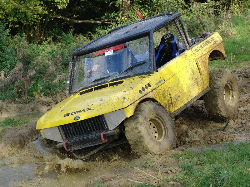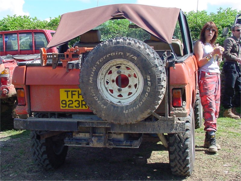 Note how air is drawn into the engine bay using fans through vents cut into the bonnet. The radiator is mounted longitudinally in the back with twin electric fans. The original Range Rover dials have been used in this bobtail Range Rover pick up and any new electrics are in waterproof enclosures with the battery mounted in the rear corner. The door trim has been replaced with sheet metal. Stormer is equipped with rocker sliders to protect the sides. The twin exhausts have been rerouted for protection. Recovery eyes have been fitted front and rear. Longranger 4x4 is the name of the company who converted this Range Rover. The company is named after an extra long Range Rover pick up conversion, one of which is used to tow Stormer’s trailer. For more details of the Longranger Range Rover pickup and the company that built it, try the Longranger web site. Instead of making use of the original tailgate, a flat sheet of metal can be used to fabricate the new rear end. It may be much easier to make, but it does not look as nice. It may however be necessary if the rear lower tailgate has rotted / rusted through (as it usually does in the same way as the upper tail gate). With the bobtail pickup below, the only rear overhang sticking out further than the rear wheels, is the substantial rear cross member. It also looks like the wheel arches have been cut out for a bit more clearance. This Range Rover bobtail pickup has been raised with 2 inch spacers on the body mounts and bigger than standard coil springs. This bobtail Range Rover pick up was not actually built by its current owner. However he does make good use of it including green laning (in Wales). Not the strong front and rear bumpers and comprehensive external roll cage. It also has very strong sills made from square section steel in addition to the scaffolding pole side steps. Stumpy (the nearly obligatory name for a bobtail) pictured below is a 3.5 V8. It was recently stripped and welded as the sills didn't exist. Actually nor did big bits of floor and the inner wings were almost completely missing too. There was actually nothing holding the wings on apart from three bolts that go to the bulkhead. All this repair work required a full 8' x 6' sheet of steel, a whole 5kg roll of wire and 5 days of working 9 am to 8 pm. The next plan is a 2" lift, followed by a 5.7 Chevy conversion when a reasonable engine can be found as Steve currently has a bigger engine in his Ford Capri than his bobtail, which he says "is not good". Thank you Steve for the photos and information. Home Tomcats Other Options Off Road Racers |