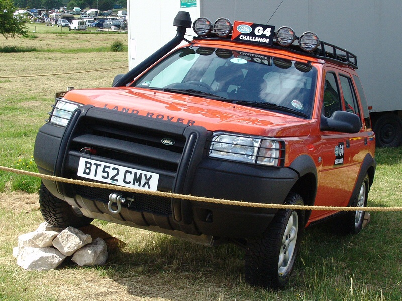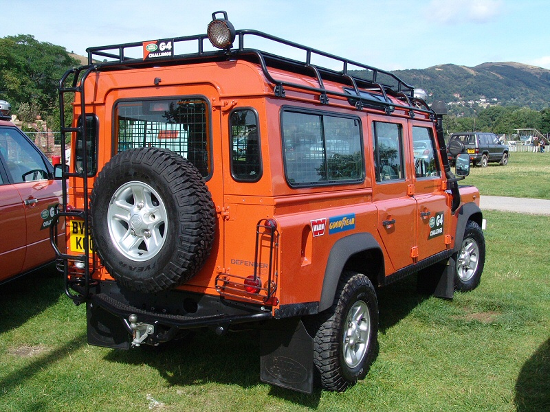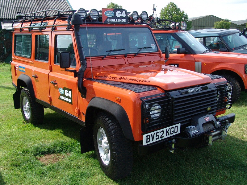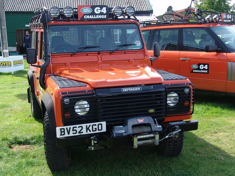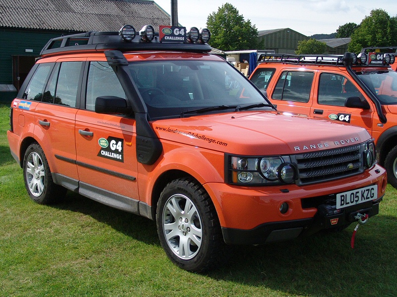 Other 2006 G4 Challenge Land RoversThe G4 Challenge Range Rovers are the same in that they were for the competitors in 2003 and as support vehicles in 2006. They are meant to be carrying film crews and medical personnel. Again similar to my support vehicle even though I only take stills not film, I am a qualified First Aider that does voluntary work with St. John Ambulance. The G4 Challenge Range Rovers also have V8 engines like my Support Vehicle. I like the little piece of chequer plate (on the Defender 110) to prevent you slipping when using the bumper to climb onto the bonnet. As I don’t have a ladder, I climb onto the bonnet to access my roof rack. 2003 G4 Challenge Land RoversThe G4 Land Rovers (Range Rover, Discovery and Freelander) below were used in the 2003 G4 Challenge. Nice bolt on accessories, but I prefer yellow to Tangiers Orange. For lots more details, pictures, specs etc, try the official Land Rover G4 Challenge web site (http://www.landroverG4challenge.com/). Home Tomcats Other Options Off Road Racers |