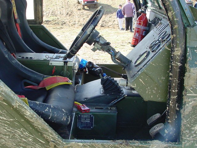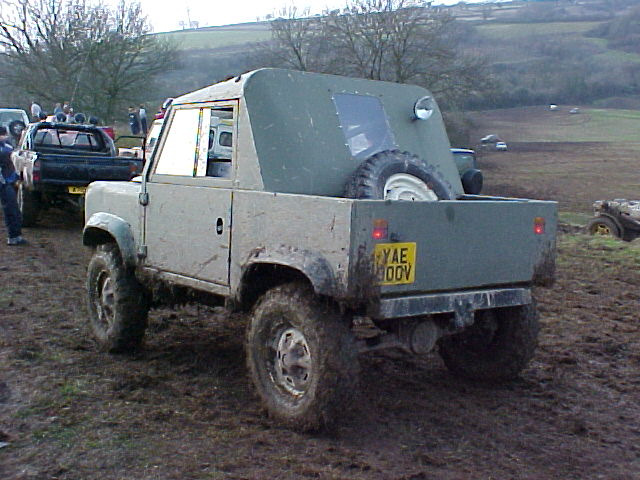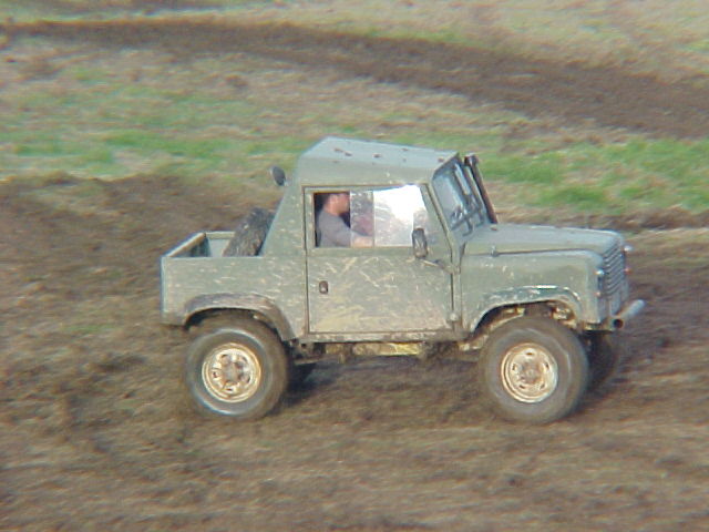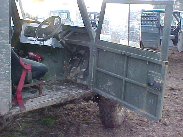 According to the driver, this hybrid Landrover is built on a Range Rover chassis cut down to give an 88 inch (88") wheelbase with a total length of 100 inches (100") which is the length of the Range Rover chassis before it was cut down. It has a homemade body with a flat front and back end. It is equipped with a Rover V8 engine.