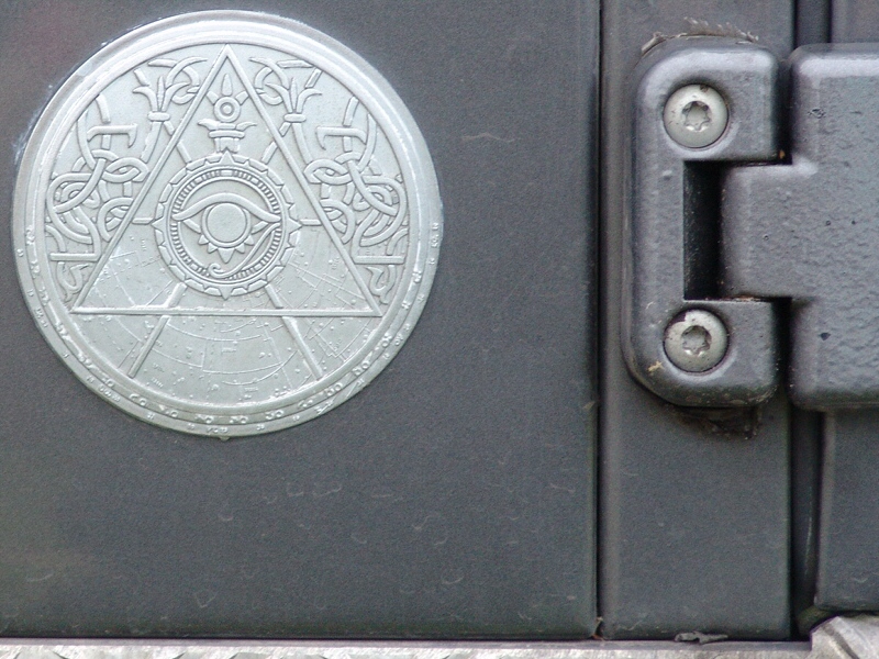 I will need my own Triangle of Light / All Seeing Eye symbol. This was the symbol of the film, but was not on the original Tomb Raider Landrover in the film. There was a Landrover Special Vehicle badge in the position by the bottom hinge. The Tomb Raider badge does appear on the limited edition Tomb Raider Landrovers sold to members of the public.