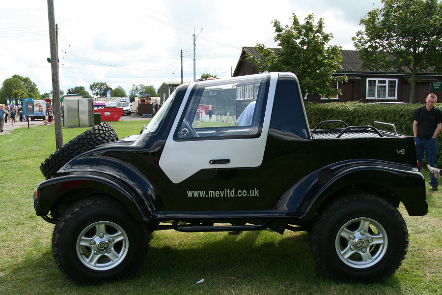 The MEV 4x4 (named after the manufacturer Mills Extreme Vehicles Ltd, based in Ratcher Hill Quarry, Notts) has a purpose built tubular steel chassis and fibre glass body (both built by MEV Ltd), but uses many of the components including all the drive train from a single donor vehicle, a Classic Range Rover.