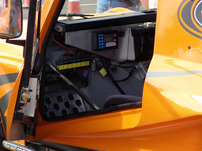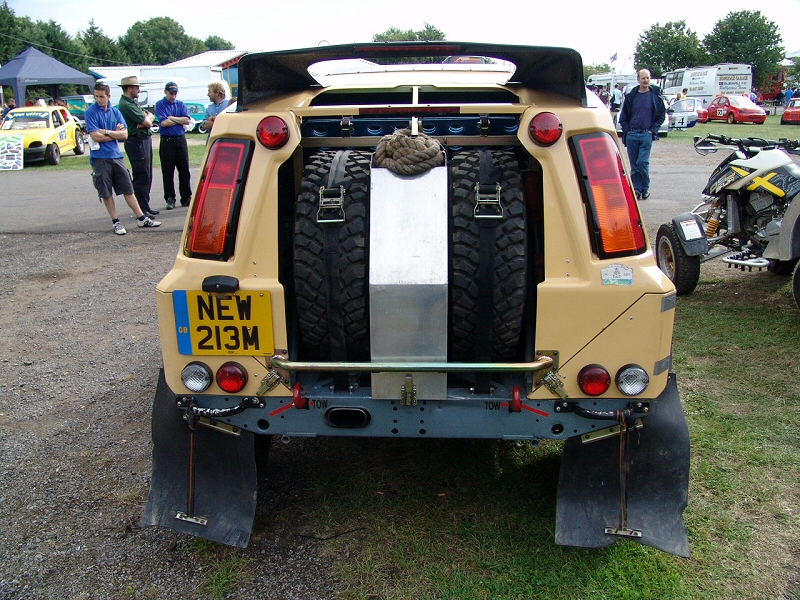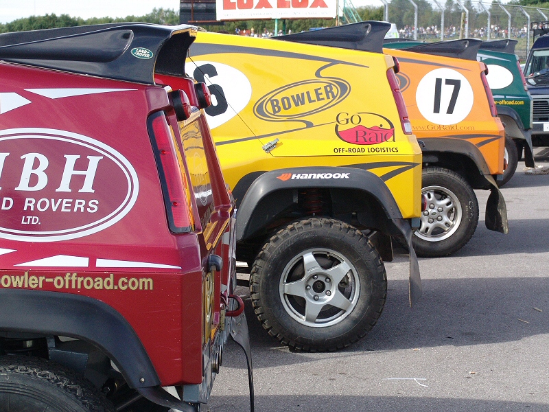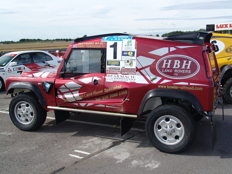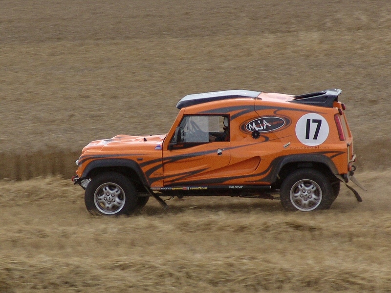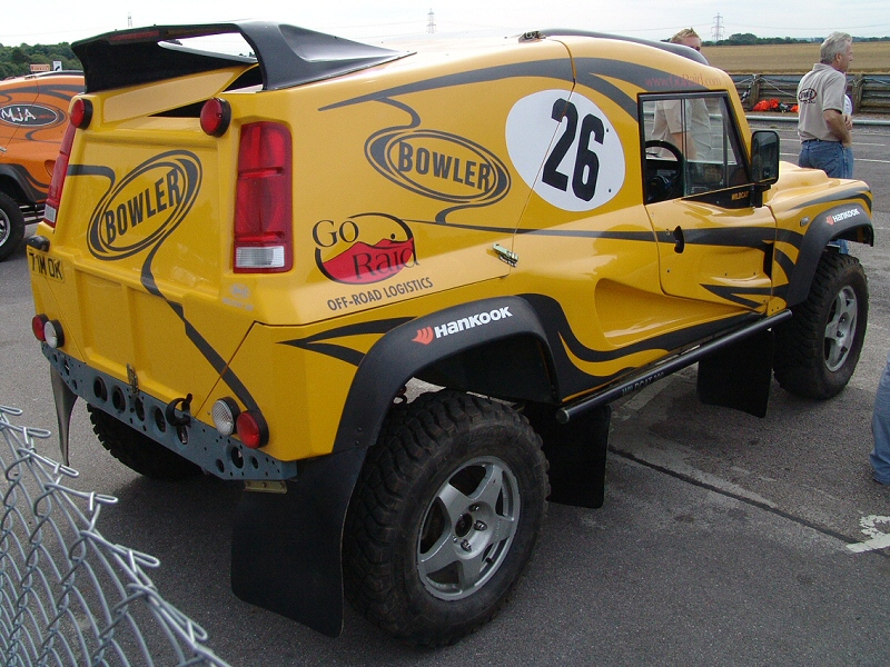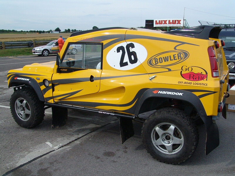 They were also offering (expensive) rides in a Bowler Wildcat around the circuit. This off-road rally car was holding its own on a proper (tarmac) race circuit against the other rally cars which are optimised for use on roads. I believed it is powered by a 5 litre Rover V8 engine (it did not belch lots of black smoke like the oil burners). It also has an enclosed back. I also got some pictures from all angles of the Wildcats parked in the paddock. I believe the Bowler Wildcat below is driven by Nick Tidboald in the Hill Rally Championship. More details about Go Raid and there support for Bowler Wildcats competing as part of the Bowler-Spirit Off-Road racing team in events such as the Dakar Rally can be found at the Go Raid web site (http://www.goraid.com/). These are not the only Bowler Wildcats I have photographed. There is another Bowler Wildcat and another Bowler Wildcat at the Castle Combe circuit. Home Tomcats Other Options Off Road Racers |
